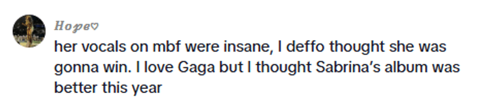 But when it came time for the awards to be announced, Carpenter fans quickly started to feel gutted and cheated on the singer's behalf as she lost one category after the next.