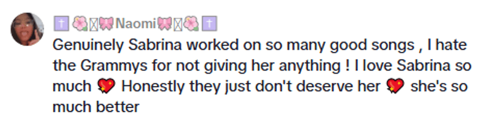 Others called the Grammys out, claiming that Carpenter was snubbed this year.