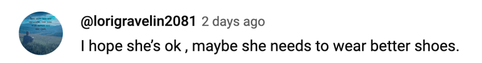 Fans cried out, "She fell!" after Underwood lost her balance while descending some steep stairs.