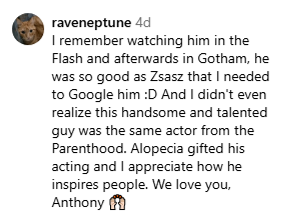 While it's terrible that Anthony Carrigan had to hear such disparaging comments, and that he had to feel such shame around his alopecia diagnosis, it's amazing that he's reached a place where he can accept himself.