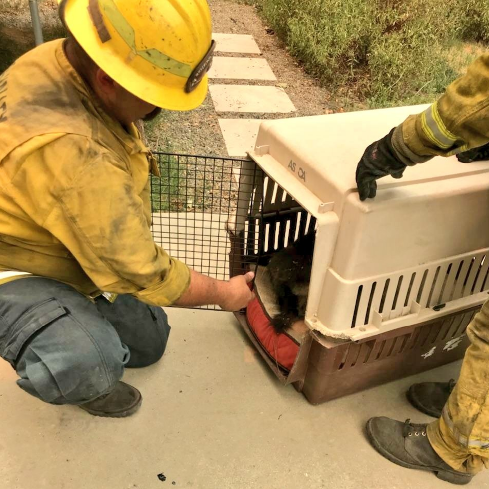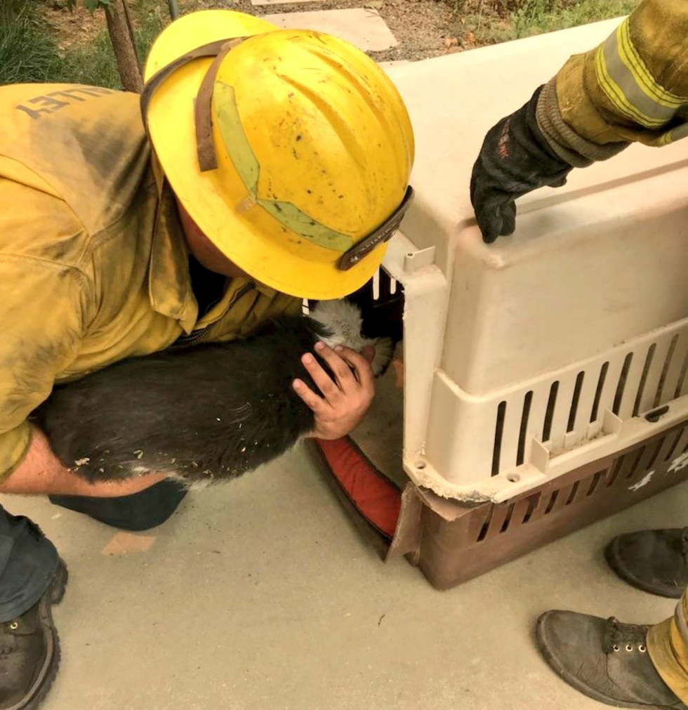 Grass Valley OES 334 discovered the cat and the chicken on the second day of deployment while patrolling areas with damaged structures as a result of the devastating conflagration.