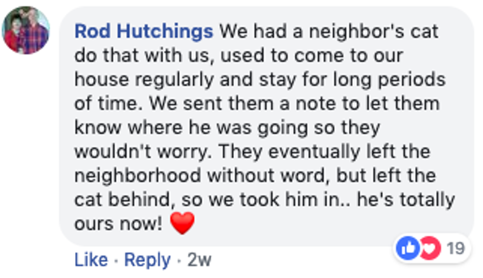 Then he returned home with an adorable note from his neighbors which shed light on the cat's whereabouts.