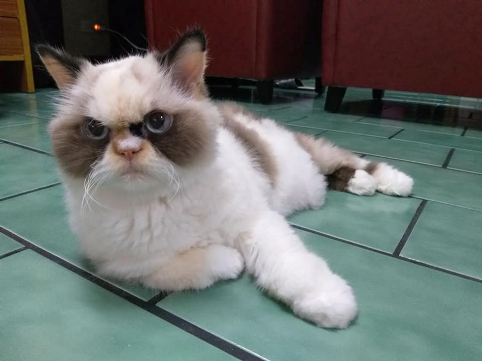 Meet the new 'grumpy cat' - a moody furball that bears a striking resemblance to the internet icon.