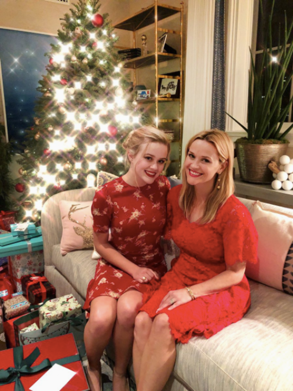 Finally, on Christmas Eve, Reese Witherspoon shared some photos of her picture-perfect family, with their Christmas tree sparkling especially brightly in the background: