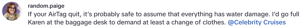 She continued, saying that the AirTag she had attached to her luggage had stopped working when she tried to find out where her bag was.
