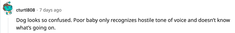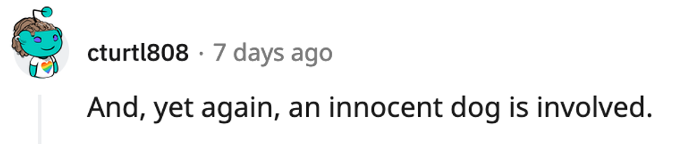 Redditors couldn't help but notice the poor dog caught in an awkward moment with its owner.