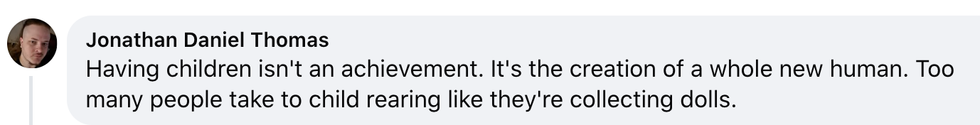 To provide context, he was apparently sitting with a friend and watching an interview, and the person in question was "bragging about not having kids and how much time it afforded them to do other stuff."