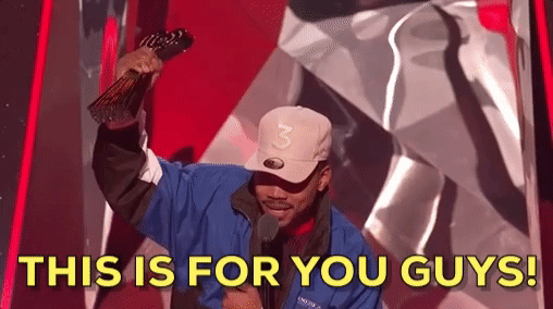 At different times he references a few of his notable hits, claiming he wants a statue built in his name, then another time slyly rewords lyrics from his Coloring Book hit "All Night."