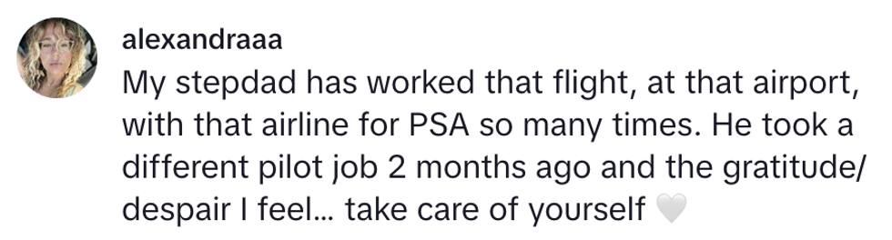 "The man next to me had a daughter who is a flight attendant with PSA who was servicing that flight from Wichita," he noted, of the AA jet involved in the mid-air collision.