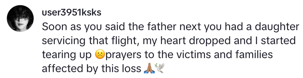 "Prayers for everyone who was on that plane and prayers for their families."
