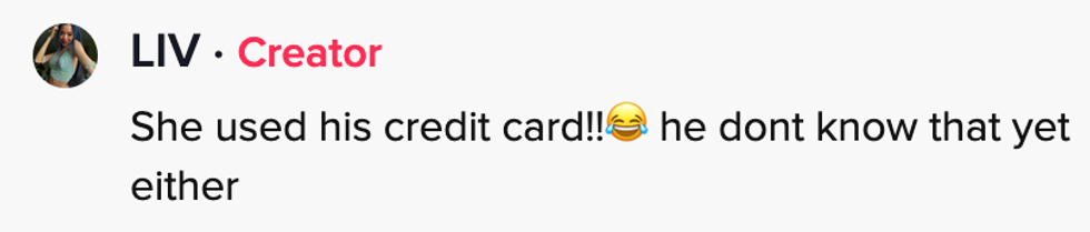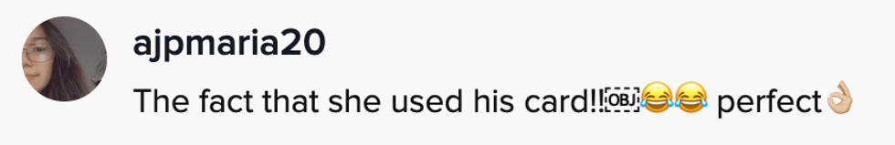 Portillo also mentioned in the comments the customer used her soon-to-be ex's credit card to pay for the purchases.