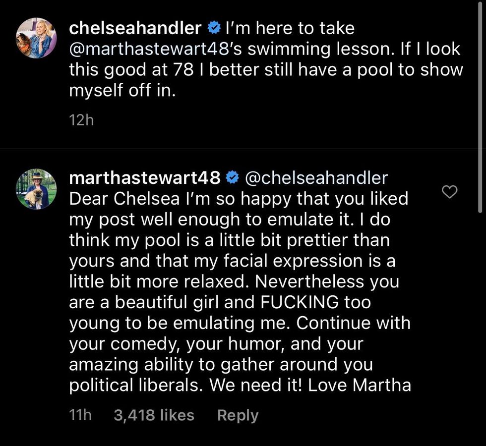 Martha Stewart's roast of Handler's pool selfie is not nearly as savage as she could have gotten, but still had a healthy dose of shade.