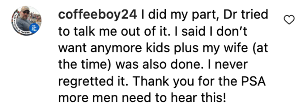 Several men also chimed in, claiming their vasectomies were quick, easy and overall a great decision.