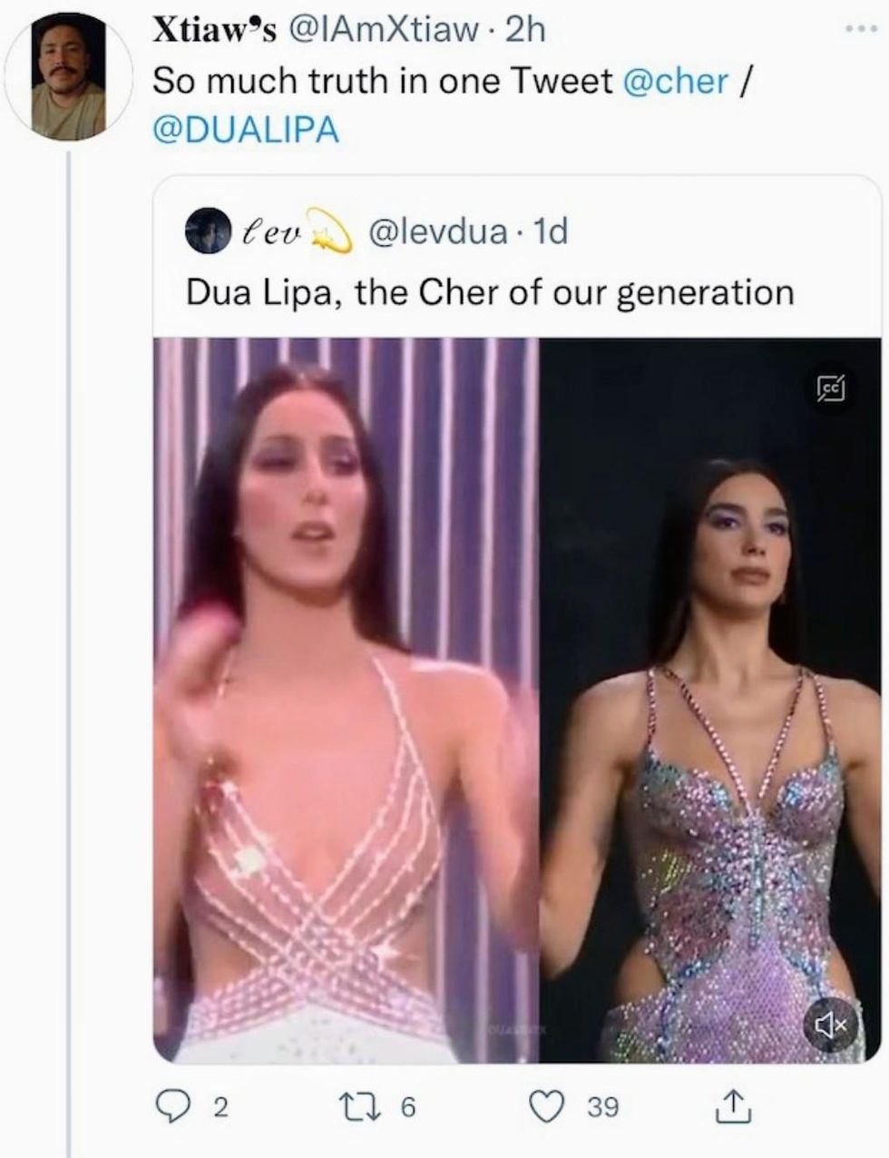 Not to take anything away from Lipa, who is an accomplished artist in her own right–with accolades including five Brit Awards three Grammy Awards, two MTV Europe Music Awards and an MTV Video Music Award–but many felt the comparison to Cher was a stretch.