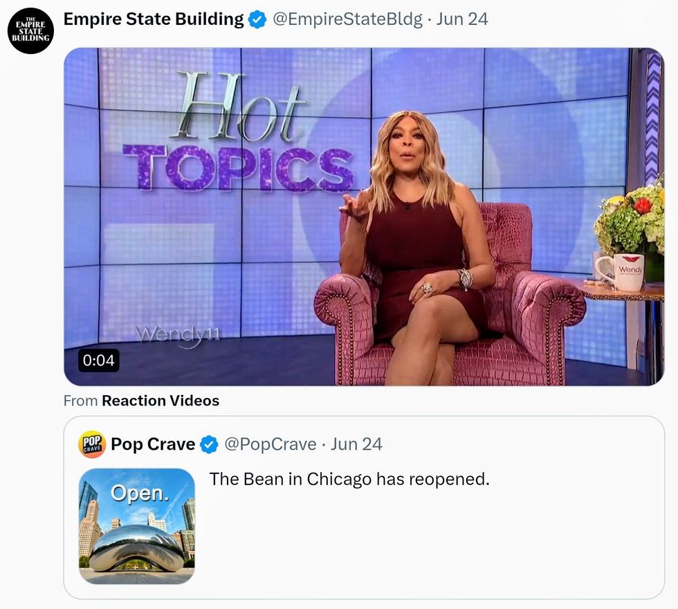 The official page for Manhattan's majestic icon shared news of Chicago's announcement and added a vintage clip of former talk show host Wendy Williams telling her studio audience, "Clap if you care."