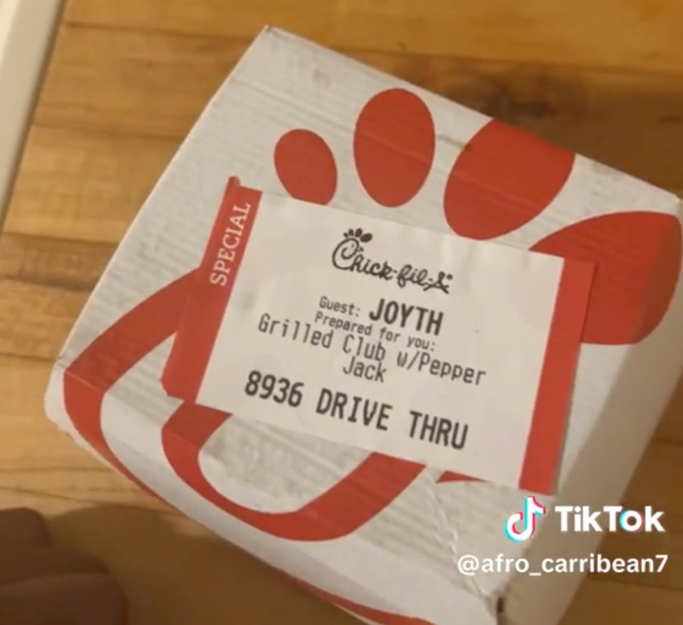 TikTok user Joyce–a.k.a. @afro_carribean7–posted a photo of her Chick-fil-A order with her name misspelled by a drive-through attendant who apparently ribbed her for having a lisp.