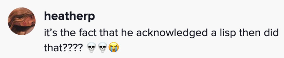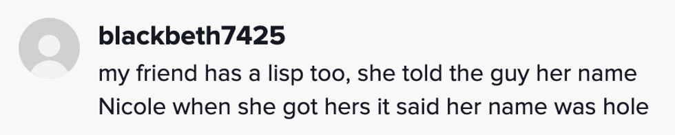She had interacted with an employee who pointed out the fact that she had the speech affectation–one that causes those who have it to pronounce "s" sounds as "th" sounds.