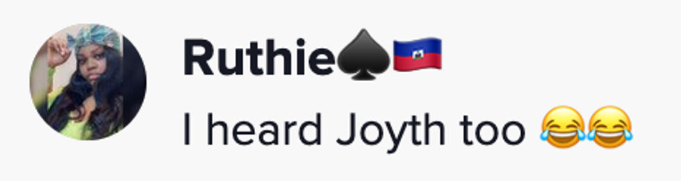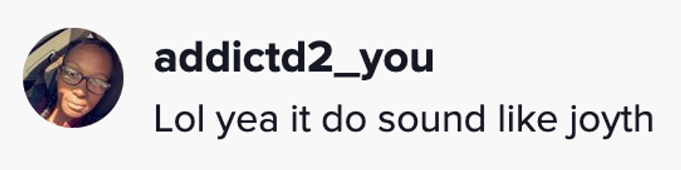We don't know who "Joyth" is, but our narrator Joyce wrote in her TikTok caption: