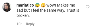 Many heartbroken messages were posted in response to the Instagram video, some also readily identifying with what they believed Eliah was feeling.