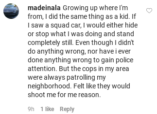 "I'll save the dramatics, but growing up black or brown most of the time means fearing the police vs looking up to them."