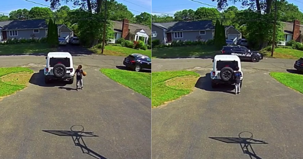 During the video Pierre-Louis captured from his security camera, Eliah can be seen dribbling around his driveway before stopping and looking down the street. When a patrol car enters the wide-angle view of the camera, Eliah hid himself behind the vehicle in his driveway, standing perfectly still.