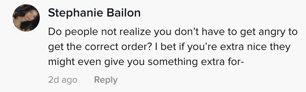 "If she truly has worked in the fast food industry she would be nice to workers," wrote another: