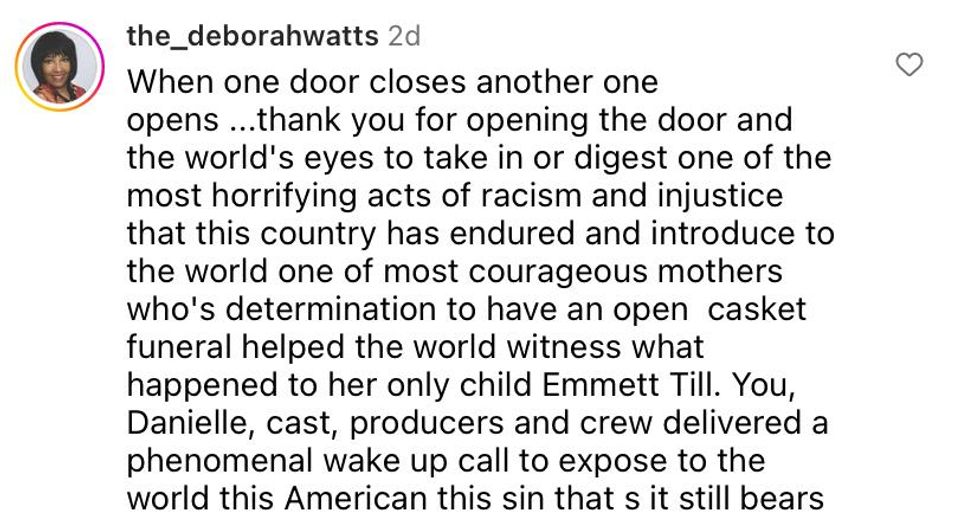 She posted a picture alongside civil rights activist Myrlie-Evers Williams, who, like Till's mother, sought justice for over three decades for the 1963 murder of her husband. Williams is also featured in the film.