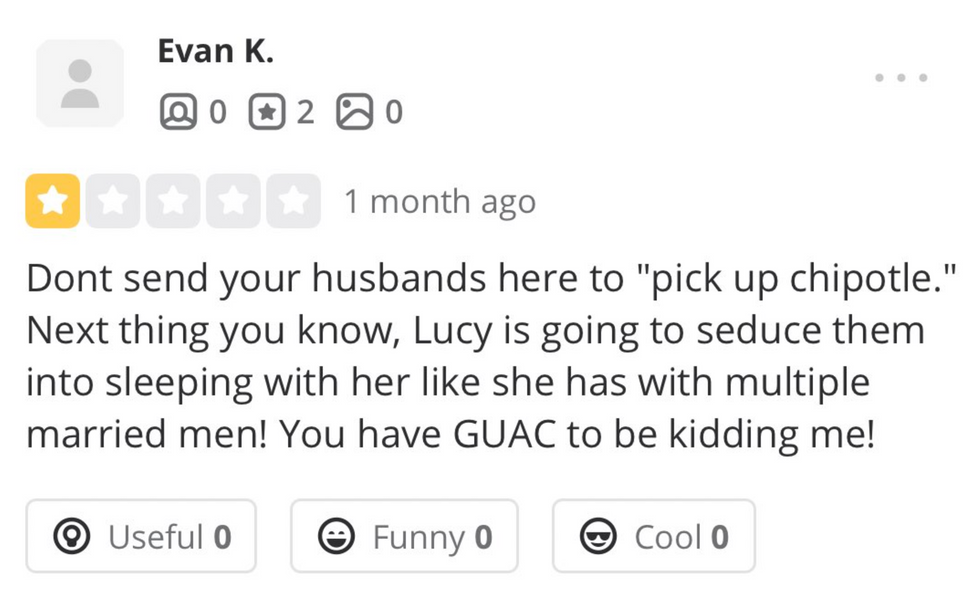 A Chipotle located in Fort Myers, Florida was slammed with negative reviews from customers claiming that an employee was allegedly seducing several married male customers.