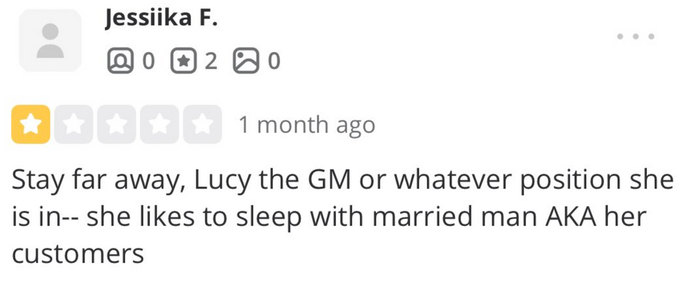 Some of the one-star Yelp reviews mentioned an employee named "Lucy" who was doing more than providing good service on the job.