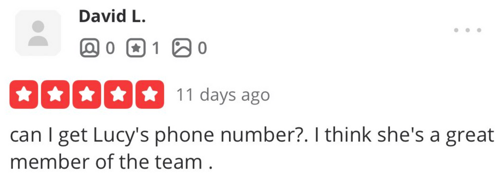 "Can I get Lucy's phone number?" inquired the Yelp reviewer.