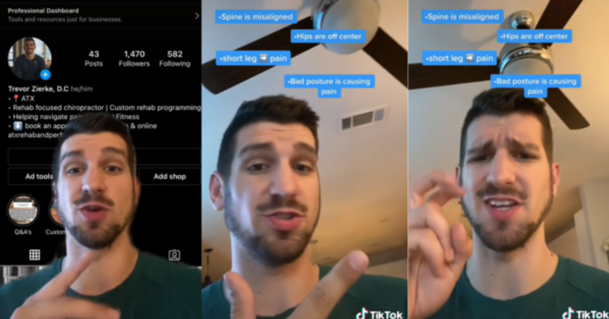 That was exactly the decision chiropractor Trevor Zierke, @trevorzierke_dc on TikTok, made when a popular trend on the app gave him the ample opportunity to talk about the realities of his field.