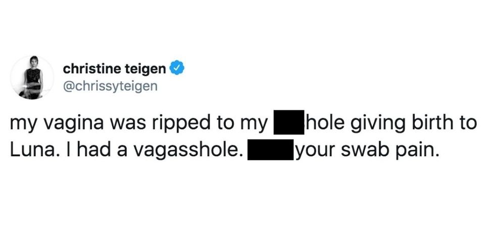 Chrissy Teigen Just Ripped Trump To Shreds For Complaining About The Pain Of Swab Testing By Getting Real About Pain Of Childbirth