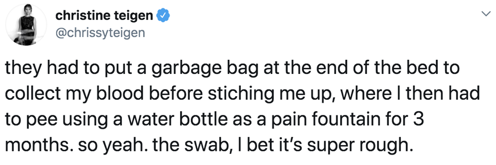 Celebrity Chrissy Teigen had the most notable response to Trump's discomfort, describing her own painful medical procedure and comparing it to a nasal swab.