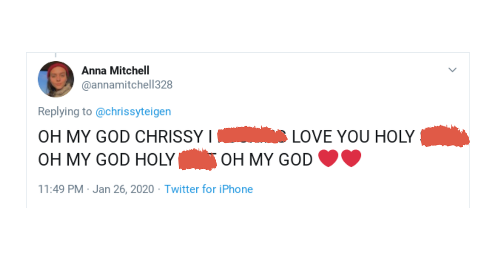 The troll is hesitating, she's exposing a weakness that Chrissy Teigen will absolutely pounce on.