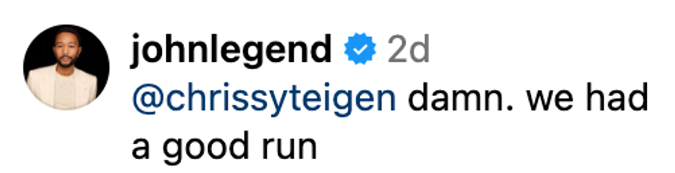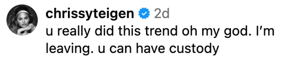 Teigen, however, was seemingly embarrassed, joking in the comments: