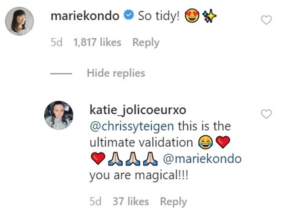 In addition to making the rest of us drool over her organizational skills, Teigen's post even had Marie Kondo stop by to praise the work.