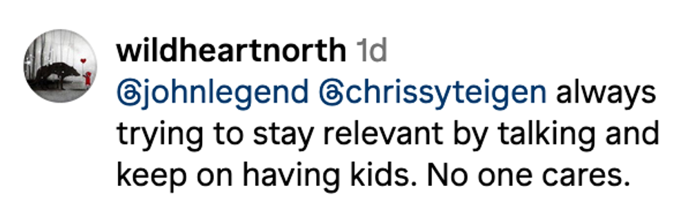 “[Legend and Teigen] always trying to stay relevant by talking and keep on having kids. No one cares.”