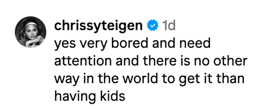 Teigen humorously responded by referring to their one-year-old daughter, Esti.