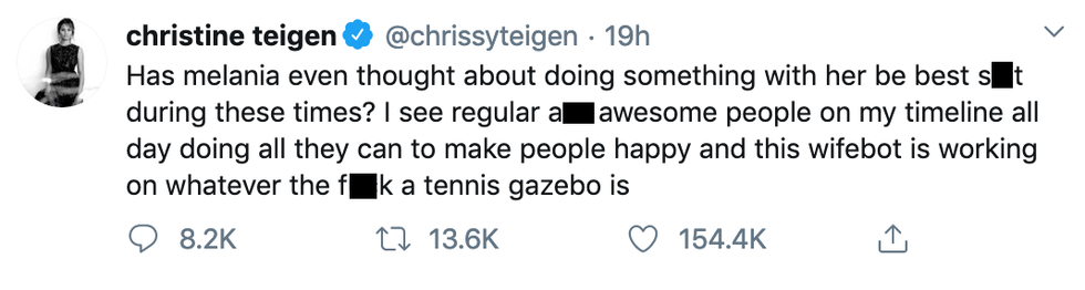 Teigen continued by pointing out the failure of Trump's "Be Best" campaign.