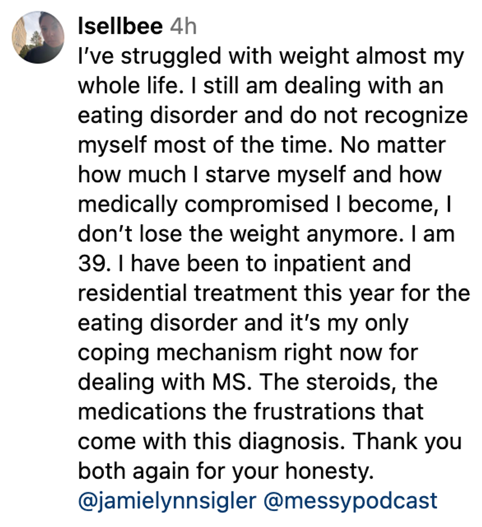On the episode, Sigler revealed she, too, struggled with an eating disorder as a teen.