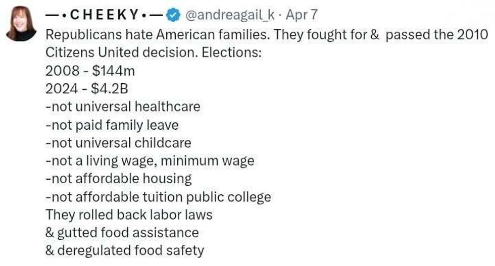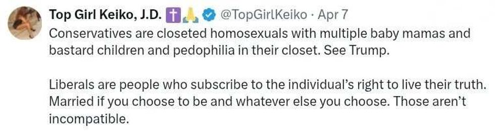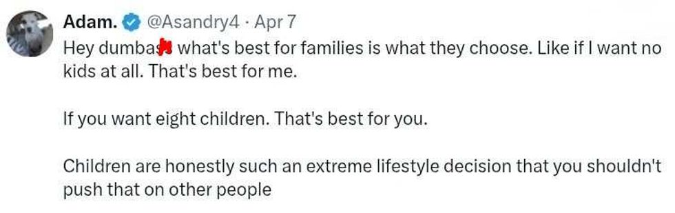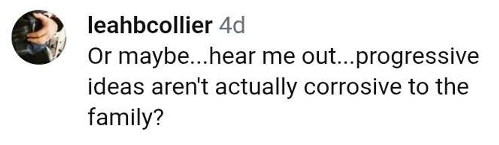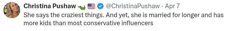 "She says the craziest things. And yet, she is married for longer and has more kids than most conservative influencers"