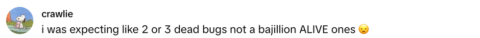 As the bugs scattered from the wreckage, the TikToker added:
