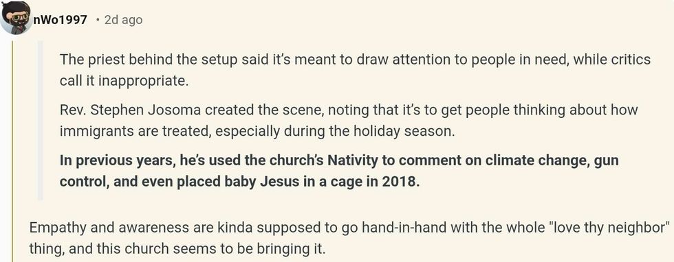 The conservative Archdiocese of Boston dubbed the church's display "politically divisive" and encouraged St. Susanna's to return their Nativity to its "proper sacred purpose."