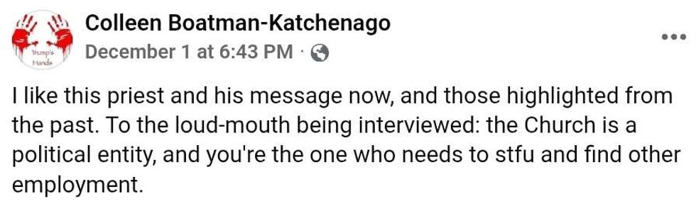 "This is a case of a dissident priest who has a long history of these crackpot, publicity stunts. He’s politicizing Christmas, he’s exploiting the Holy Family, he’s trivializing it and he’s using his position as a pastor to promote his left-wing political ideology."