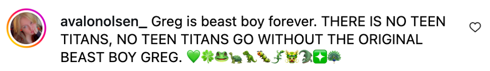 “First time sharing this part publicly on IG. Beast Boy and I love you all! Thank you all for the support and endless love. My Titans, friends, family and fans mean the world to me. 💚💚💚💚”