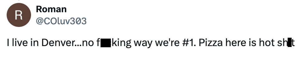 Pizza connoisseurs begged to differ when the controversial report placed Denver, Colorado, at the number-one spot.