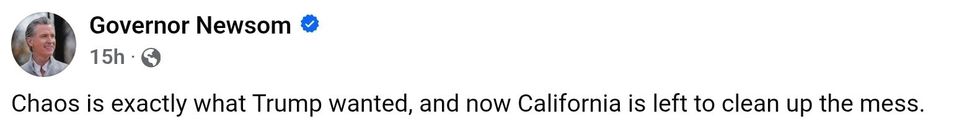 California Democratic Governor Gavin Newsom echoed the same sentiment on Facebook.