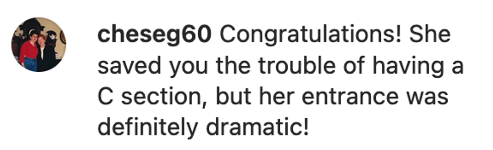 The accompanying carousel of photos showed the moment right after baby Grey made her dramatic entrance, with mom cradling her while sitting on the bathroom floor.