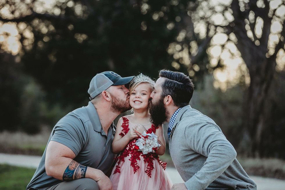 "Our daughter Willow. You may never know how your love has changed us all. The guy to the left is myself (Daddy, Daddy Dylan or Bonus Dad), in the middle is of course our Princess Willow and the guy to the right is David (Daddy, Daddy David or biological Dad). No we are not a same sex couple, but we do share a daughter."