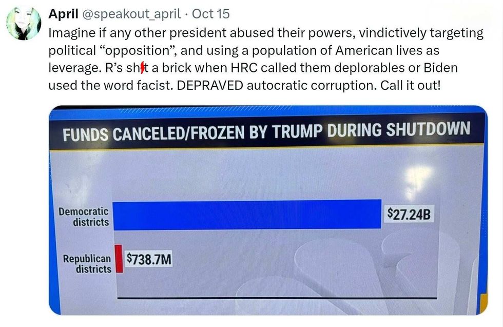MAGA Republican President Donald Trump and his White House handlers have been very vocal about exploiting the shutdown to fire government employees and cut congressionally funded projects and programs, once again exceeding the powers of the presidency.